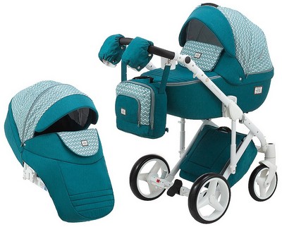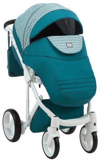Купити універсальну коляску 2 в 1 Adamex Luciano jeans Q204 зелену з принтом в стильному дизайні з великої комплектацією Ви можете в нашому магазині з доставкою по всій території України.