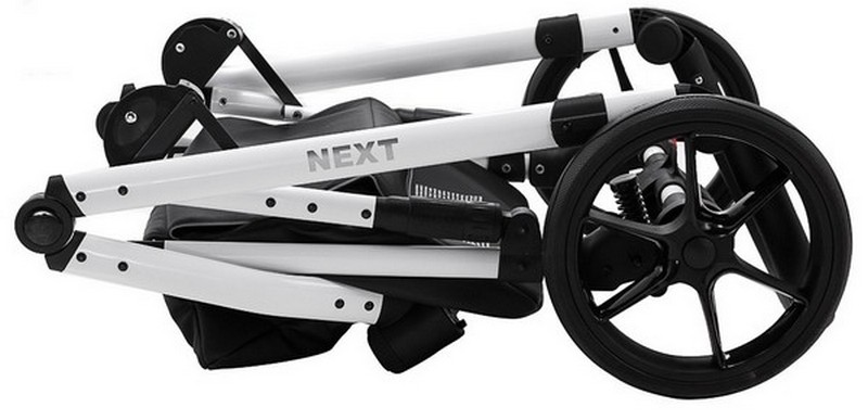 Легка рама з алюмінію складається до компактних розмірів за принципом «книжка». Амортизація пом'якшує нерівності, завдяки чому ніщо не зможе потривожити чуйний сон карапуза.