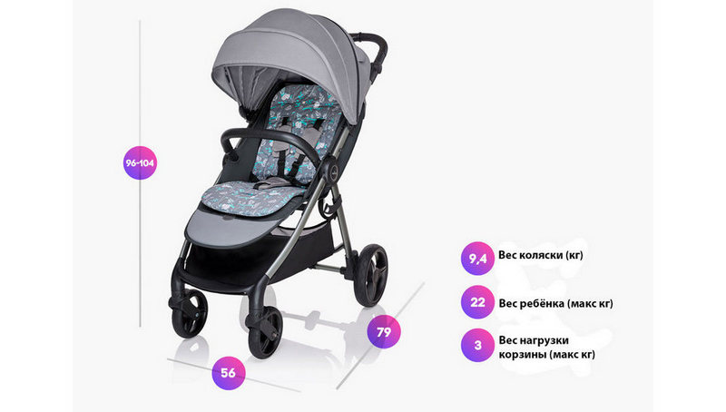 Модель поєднує в собі стриманий дизайн в практичних кольорах, вузьку колісну базу (всього 56 см), а також здатна витримати навантаження до 22 кг.