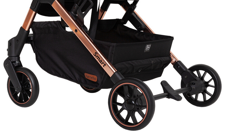 Гальмування транспорту відбувається за допомогою заднього гальма стоянки «гойдалки». Простора багажна корзина справжня знахідка для мами. У ній помістяться іграшки, речі дитини, аксесуари для захисту від негоди і покупки.