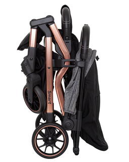 Візок від популярного бренду є відмінним співвідношенням ціни, функціоналу і зовнішнього вигляду. Цю красуню легко впізнати з безлічі транспорту завдяки контрасту практичного текстилю і золотій рамі.