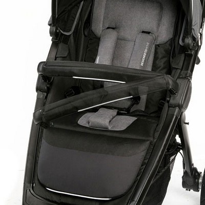 5-ти точкові ремені і накладки захищають непосиду від випадання. Бампер знімається для зручної посадки і має перемичку між ніг.