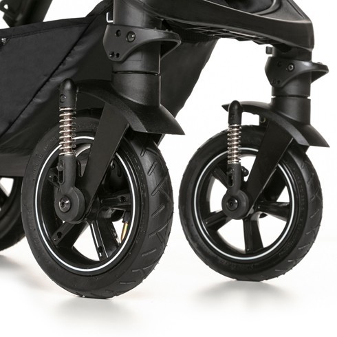 Виробник пропонує вибрати колеса під характер доріг у Вашому районі прогулянок: надувні для м'якого ходу або практичні EVA. Передні колеса обертаються навколо осі і фіксуються прямо.
