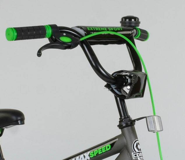 Corso Aerodynamic ST - 1015 серо-зелёный 18 дюймов - модель 2020 года, выделяется спортивным стилем с двойной рамной трубой и противоударными дисками с усиленными спицами. Абсолютно надежный детский велосипед для начинающих велосипедистов.