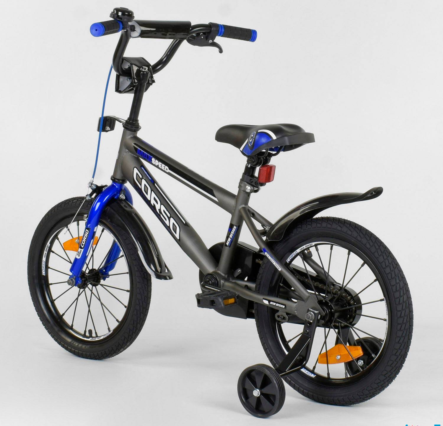 Corso Aerodynamic ST - 7910 серо-синий 16 дюймов - модель 2020 года, выделяется спортивным стилем с двойной рамной трубой и противоударными дисками с усиленными спицами. Абсолютно надежный детский велосипед для начинающих велосипедистов.