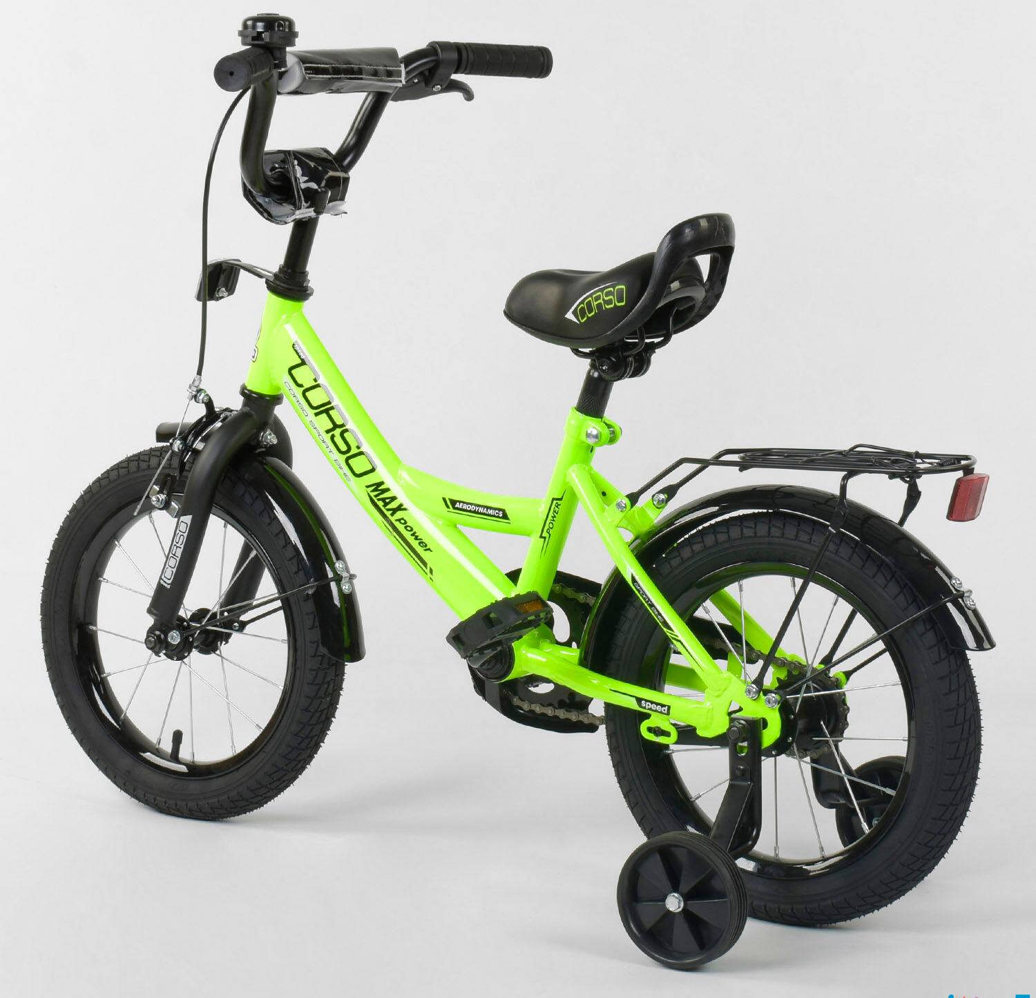 Купить велосипед Corso Classic 14 дюймов CL-14 D 0671 салатовый рекомендовано для детей в возрасте от 3 до 5 лет, с ростом 96-105 см.